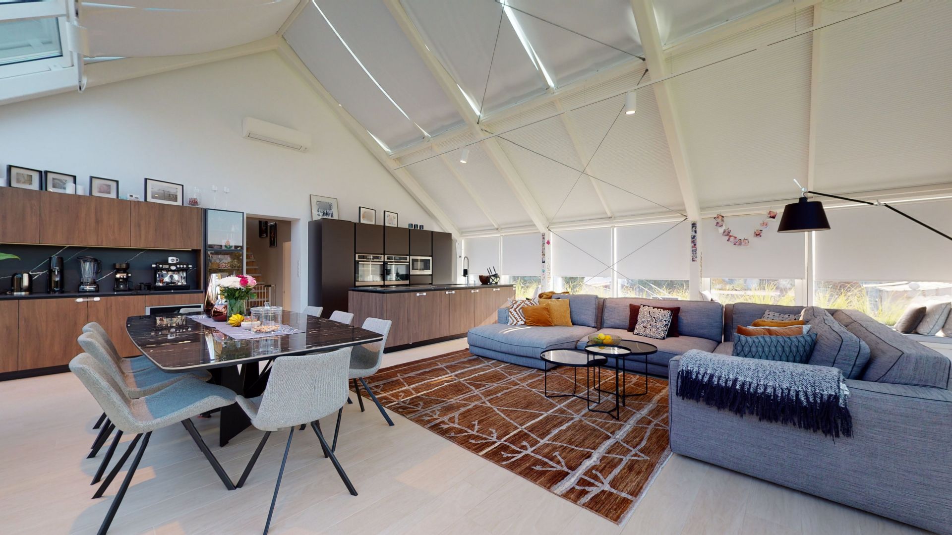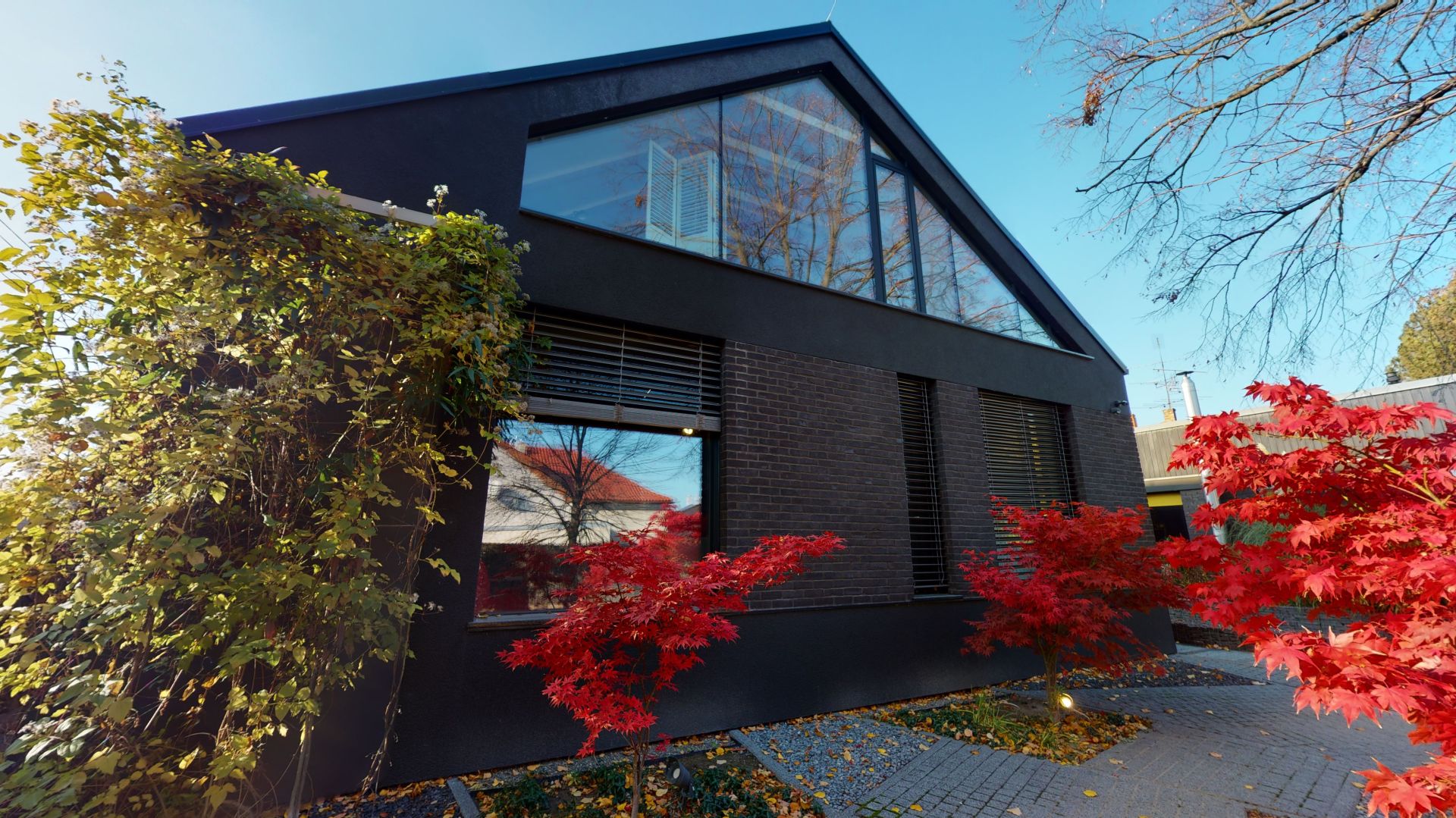 - Všetky okná na izbách na prízemí majú exterérové elektr. ovládanteľné hliníkové žalúzie