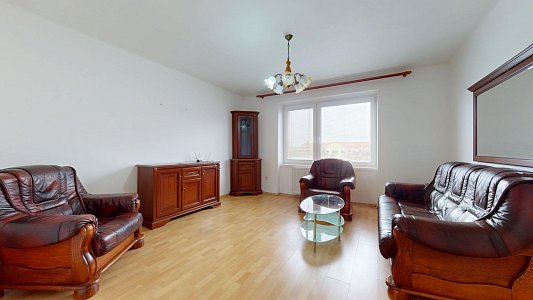 Byt sa nachádza v tehlovom bytovom dome, na 2. poschodí a pozostáva z troch izieb (byt bol 2 izbového prerobený na 3 izbový), kuchyne, kúpeľne s WC a chodby. V byte sú plastové okná s vnútornými žalúziami, v izbách sú plávajúce podlahy. Vchodové dvere sú bezpečnostné. K bytu prislúcha aj pivničný priestor.