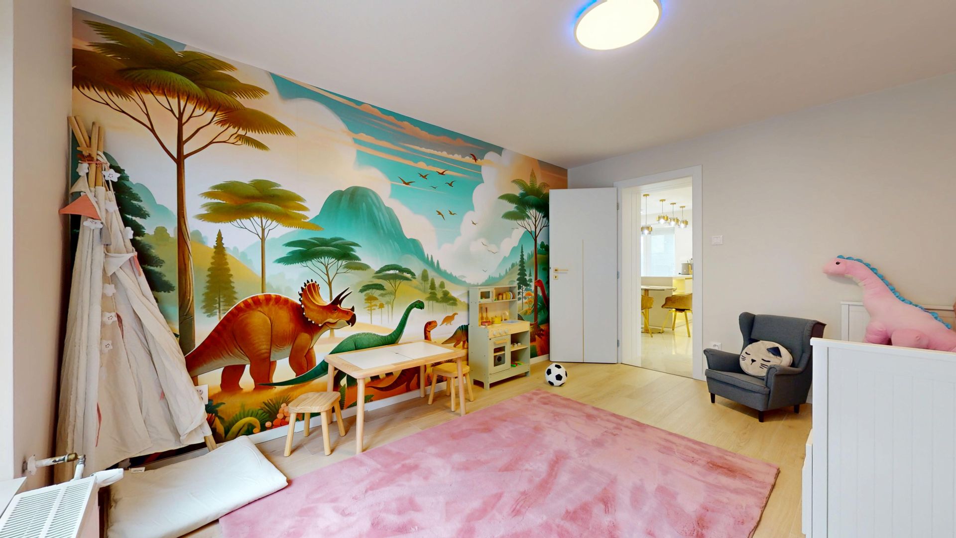 - kuchyňa spojená s obývačkou,
