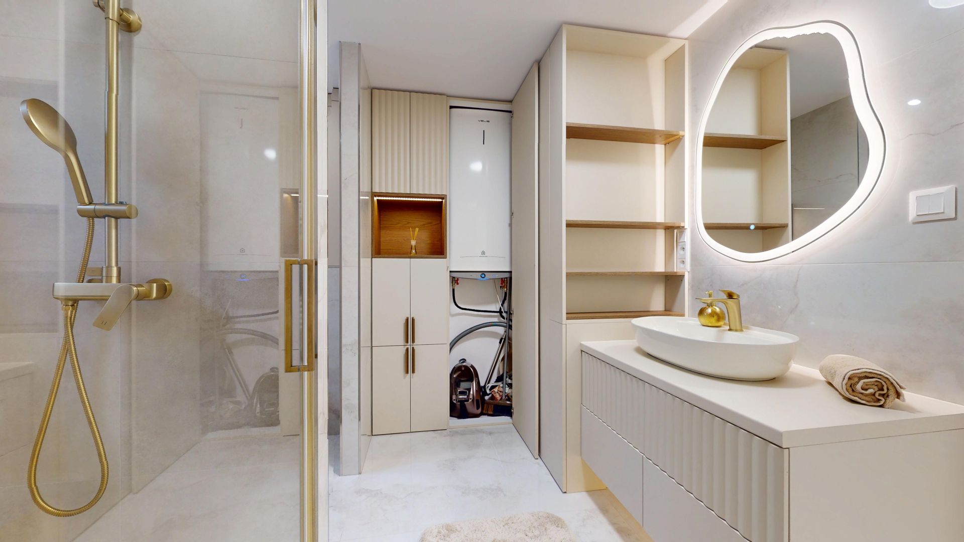 - podlahové kúrenie (kuchyňa, obývačka, kúpeľňa, chodba).