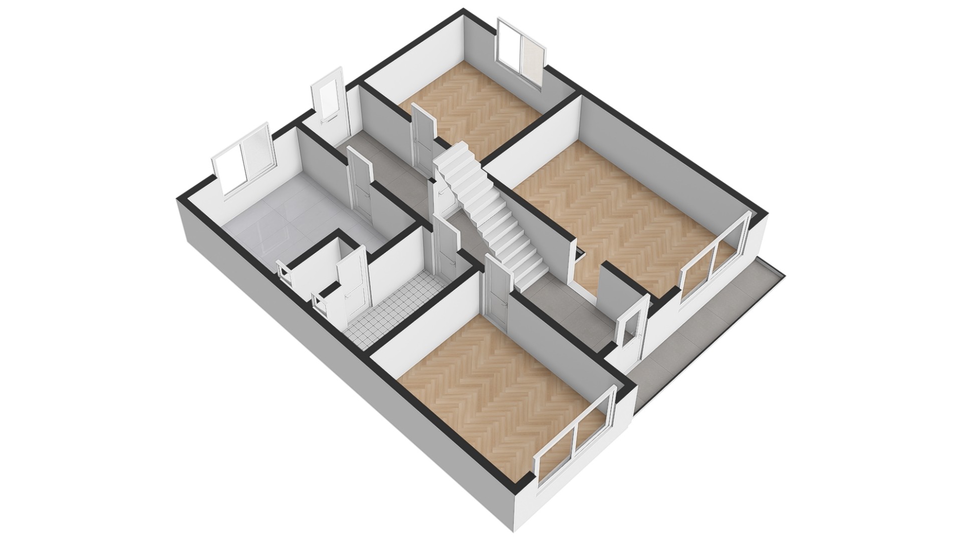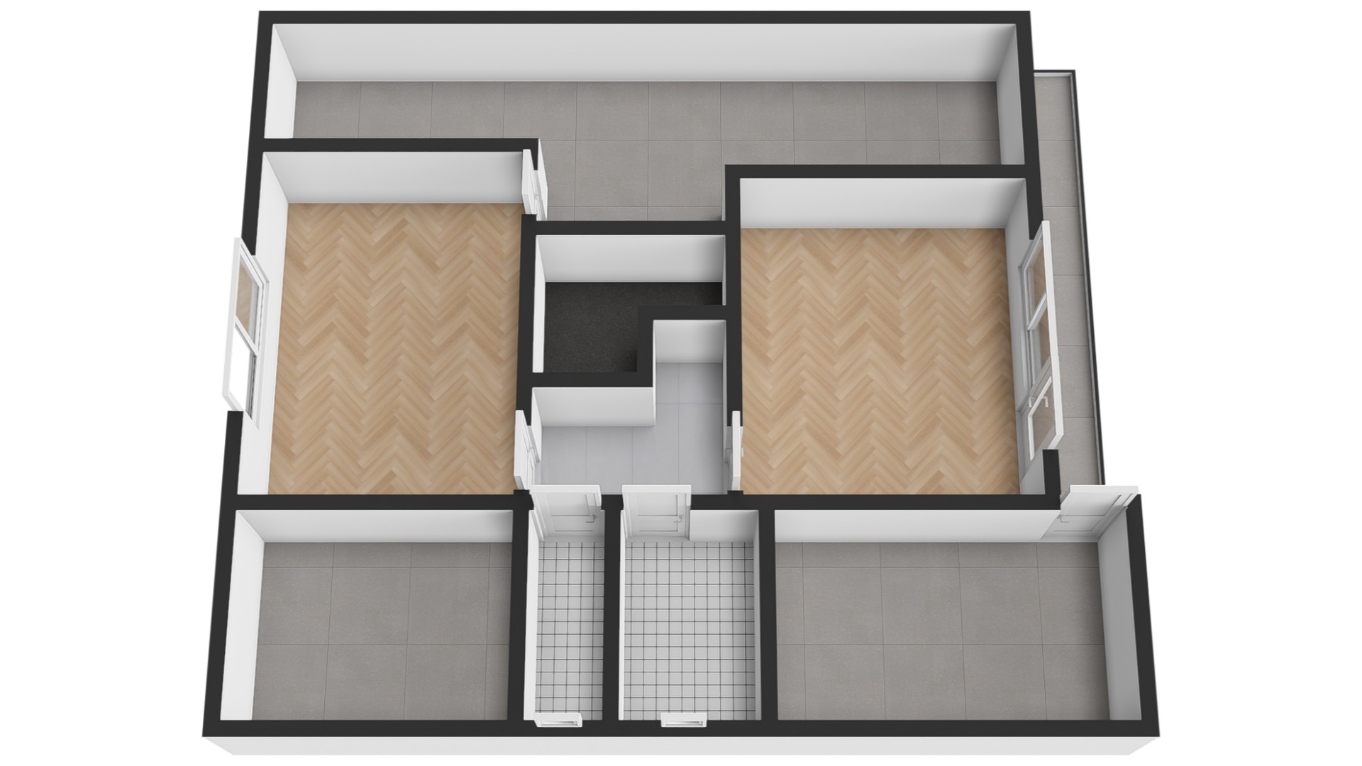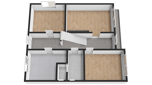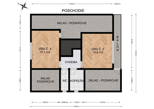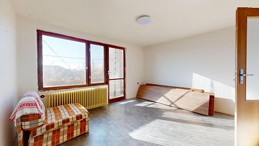 Poschodie je určené na oddych a súkromie – nájdete tu dve veľké izby (jedna izba s balkónom), kúpeľňu, samostatnú toaletu a odkladací priestor.