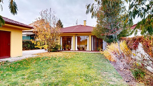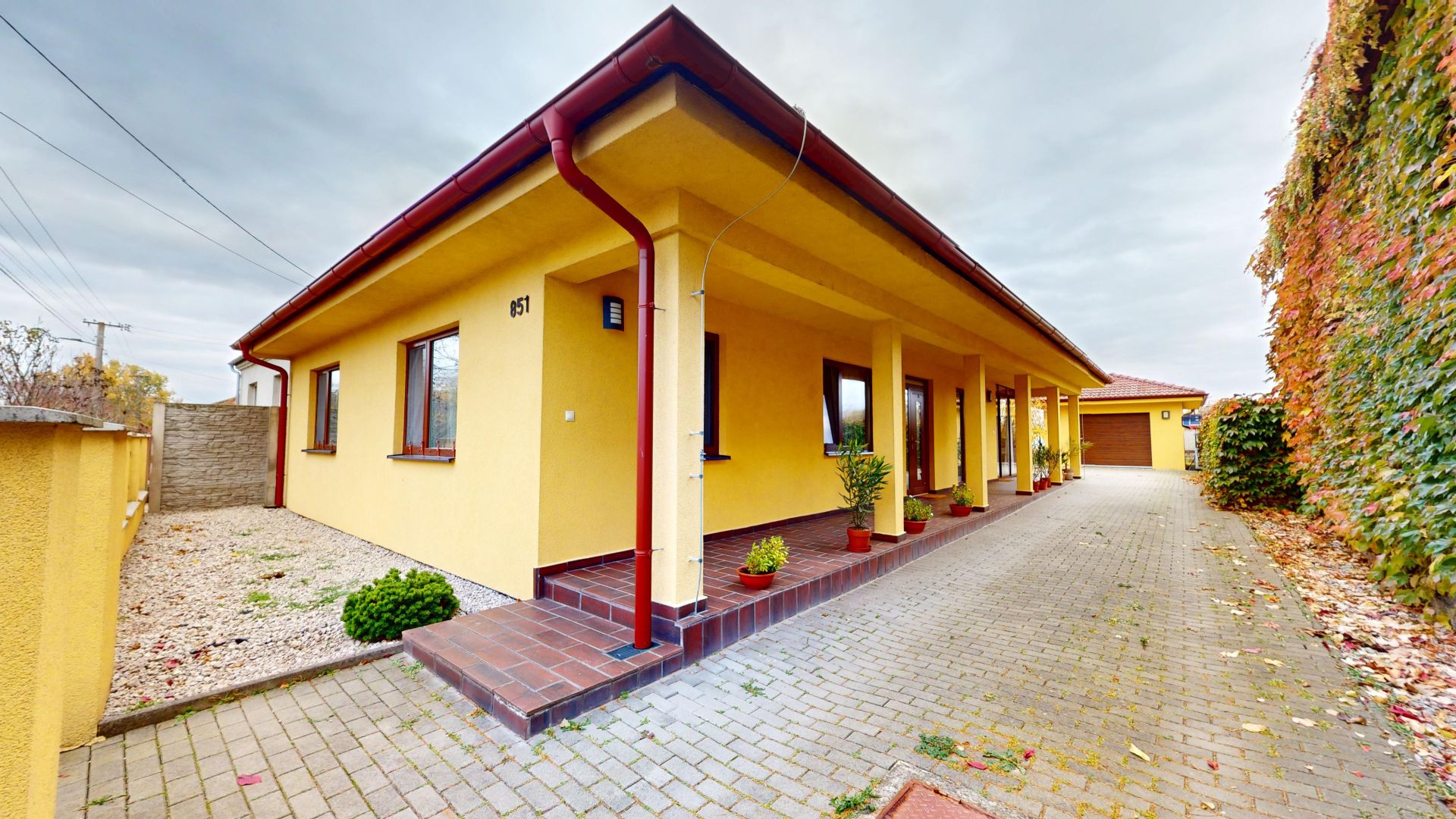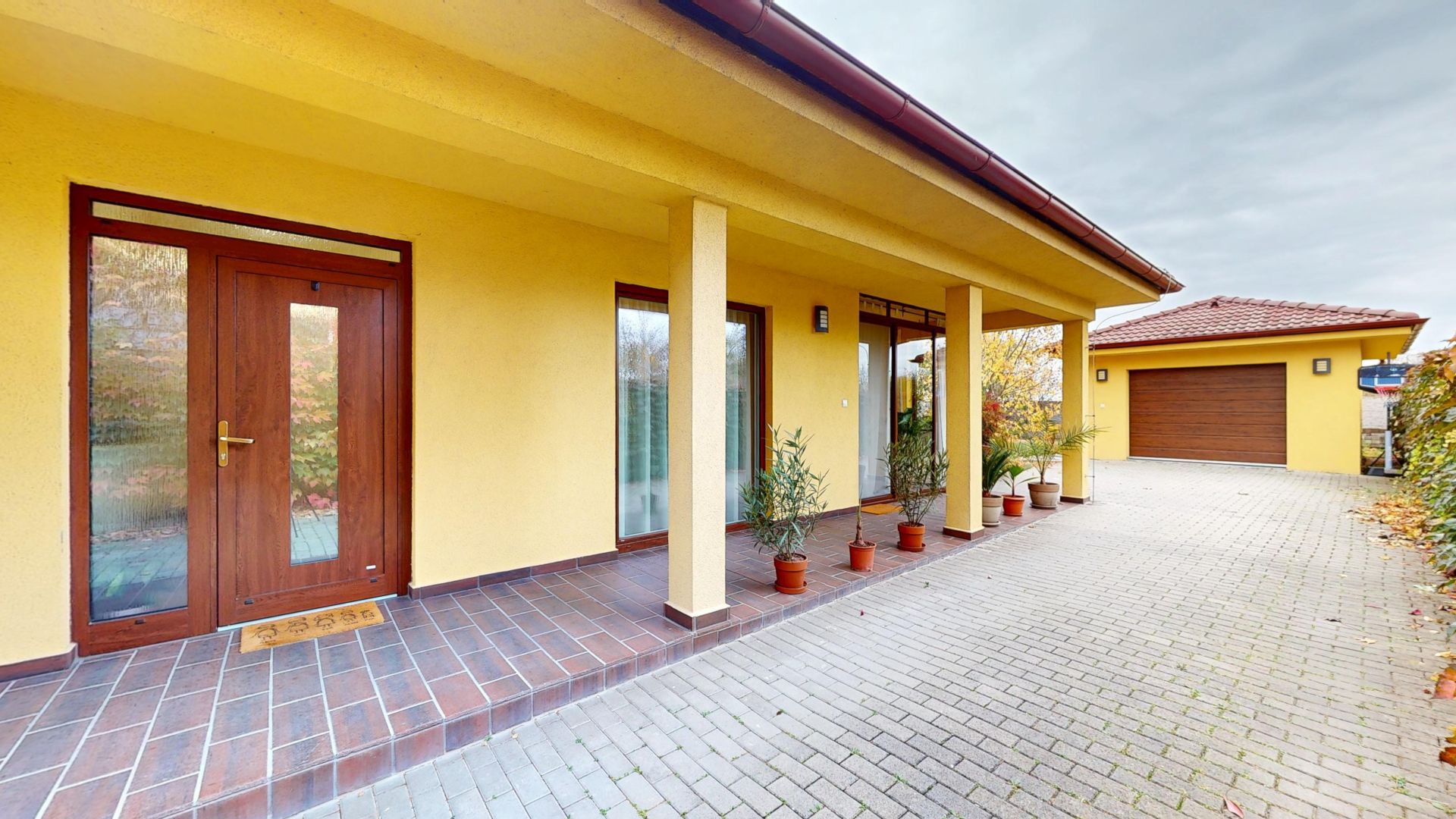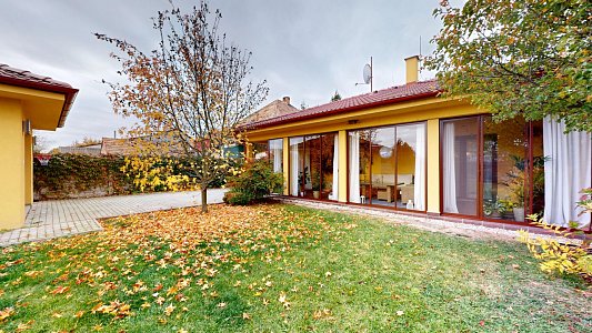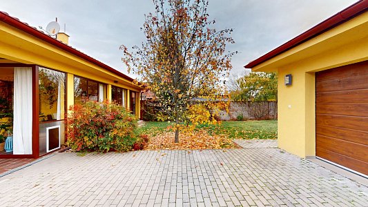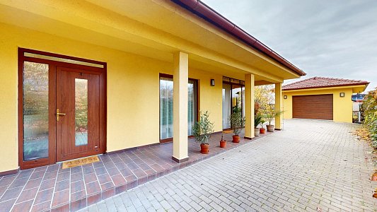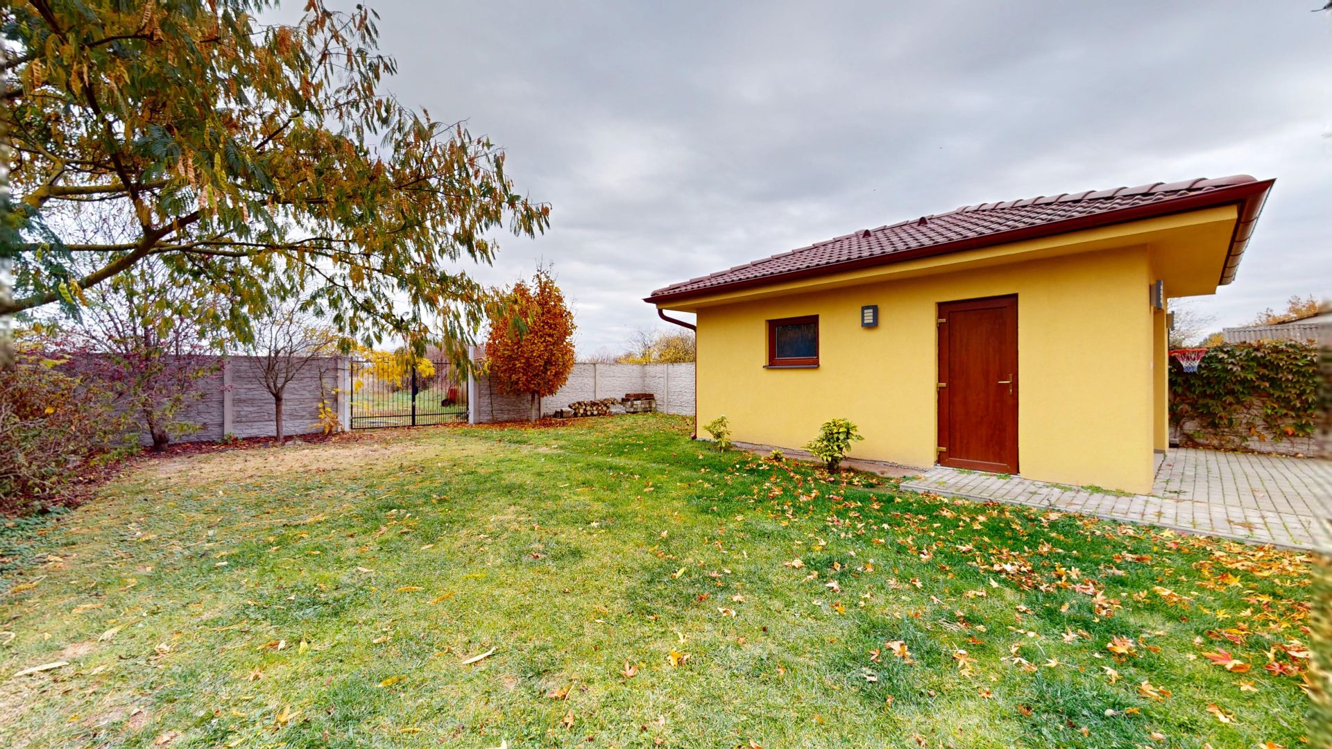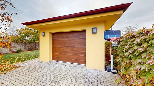 Za domom sa nachádza murovaná garáž s elektrickou garážovou bránou.