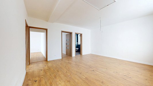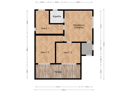 - 3 svetlé izby, obývačka s kuchyňou, kúpeľňa s toaletou, chodba,