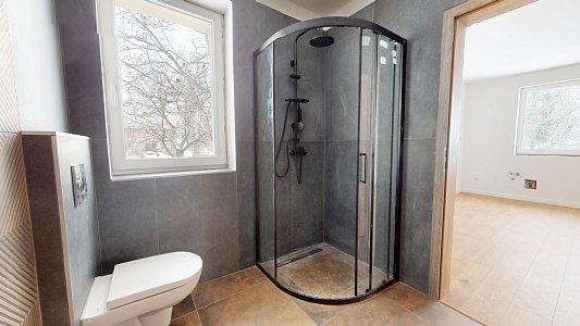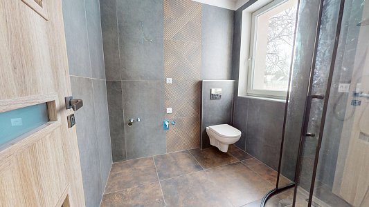 - modená kúpeľňa so sprchovým kútom a so zabudovacou toaletou,