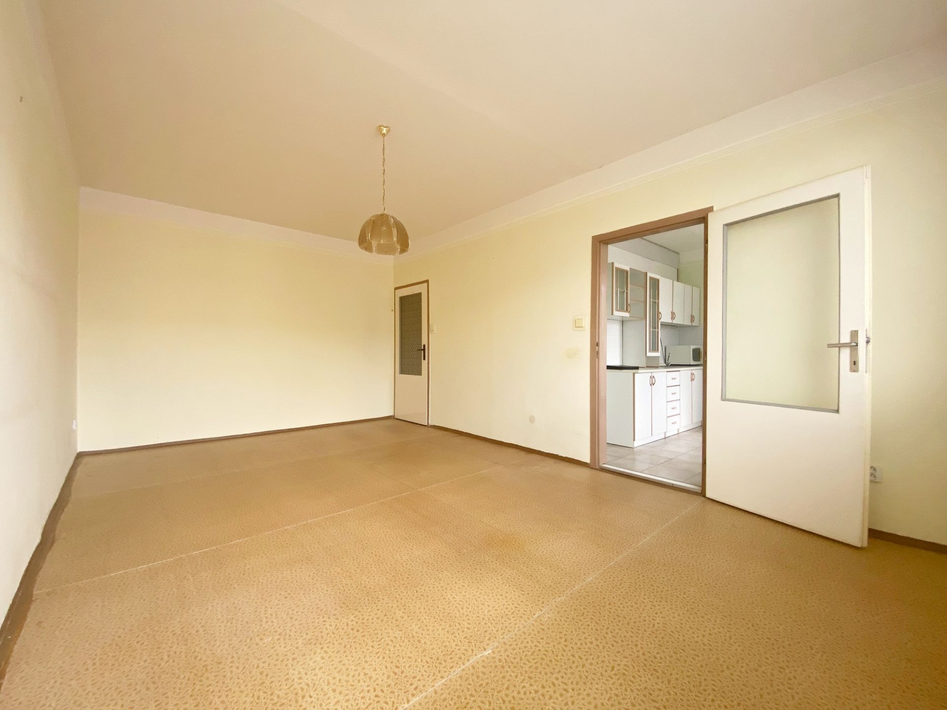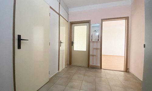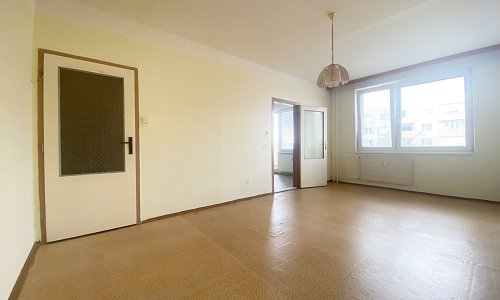 Byt pozostáva z dvoch priestranných izieb (jedna izba má dva vstupy, preto je možné rozdeliť na dve menšie izby), veľkej kuchyne so špajzou a výstupom na loggiu, priestrannej predizby, kde sa bezproblémov zmestí aj ROLL-DOOR skriňa, kúpeľne a WC. K bytu patrí aj murovaná pivnica v suteréne (cca 6m2).